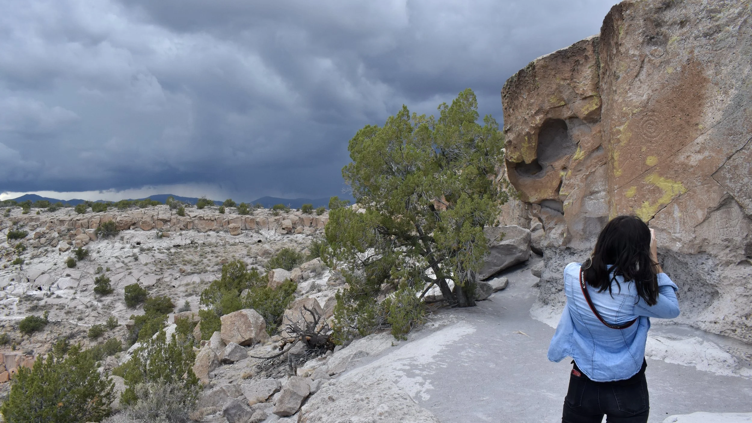 It’s a little tricky to know where it’s at but once you learn the way, it’s unforgettable. From the 502 heading west you’ll want to get off on New Mexico State Road 4 and head south towards White Rock. Almost immediately at the top of the mesa before Jemez Road and the light, you’ll park on the left (East) side of the road where there are most likely other cars parked. You’re there!