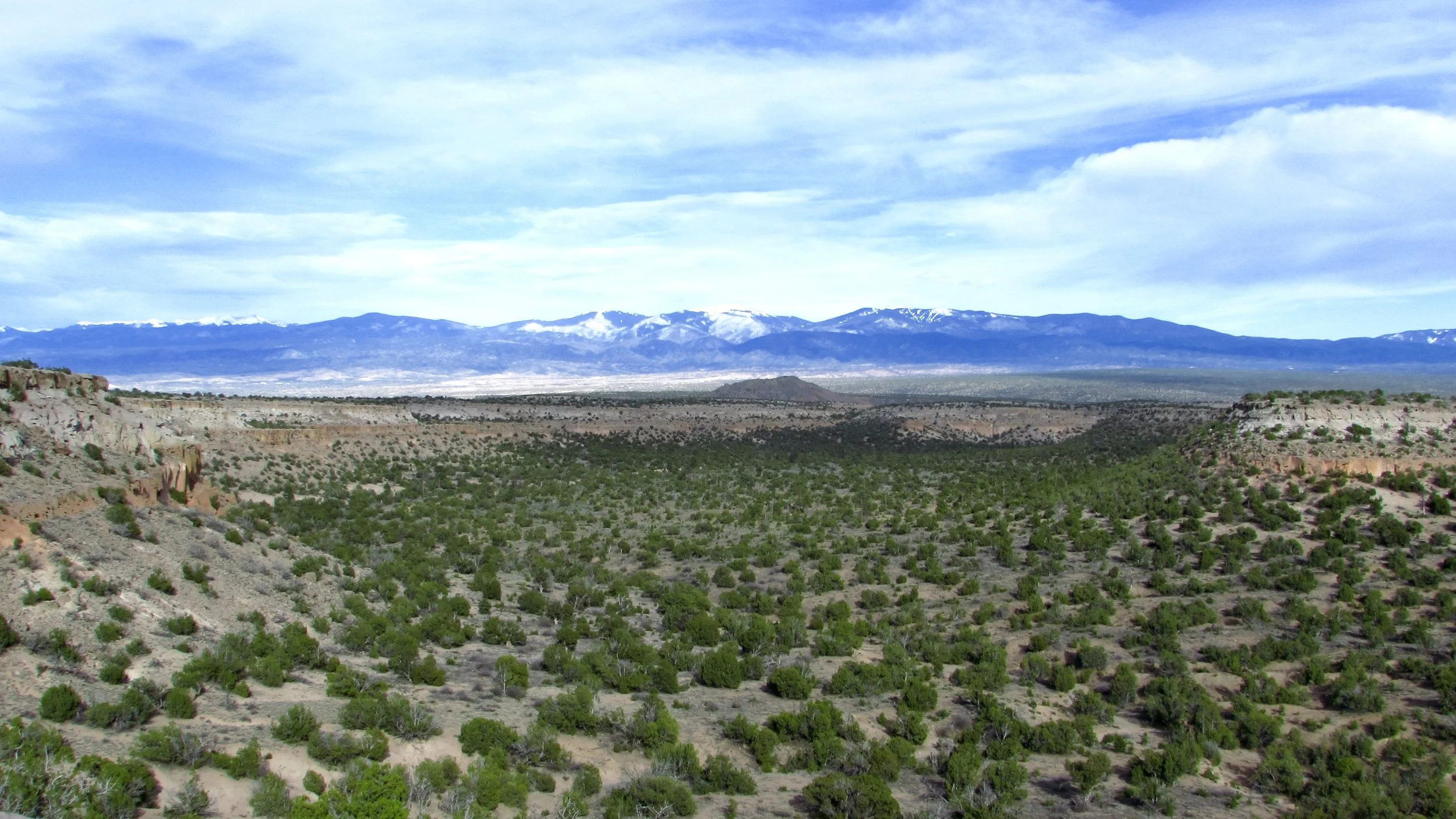 The views on top of the mesa are awesome with the Jamez Mountains behind you to the west, the Sangre De Christo in front of you to the east, the Sandia Mountains to the south, and the canyons all around.