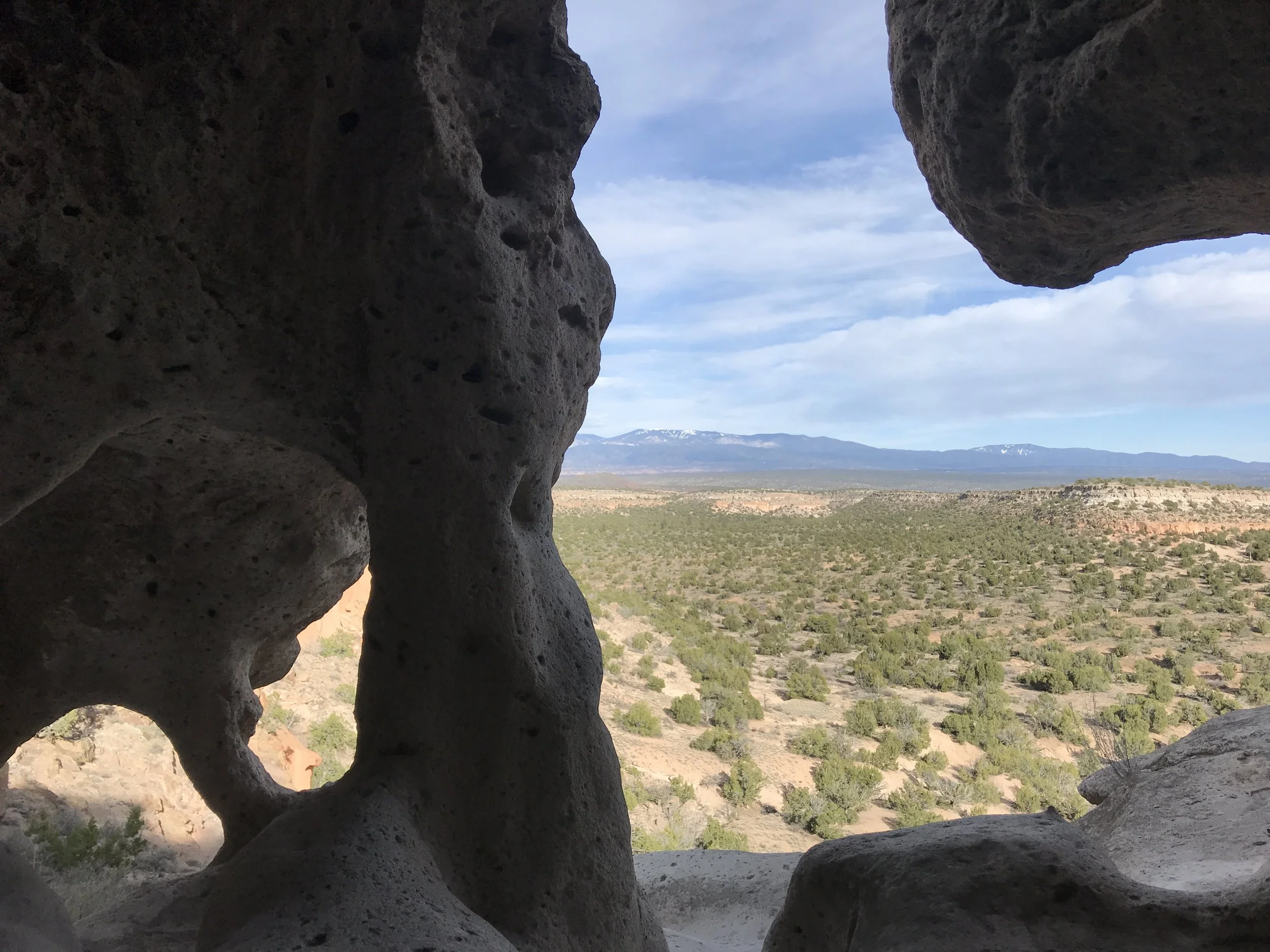 The Tsankawi Village Trail (1.5 miles roundtrip) is an awesome and fun loop trail on the top of a finger mesa near (but is still technically part of) Bandelier National Monument on what is known as the Parajito Plateau, next to the Jemez Mountains. The hike involves some ladder climbing (up and down) and cliffside walking so if you’re afraid of heights you’ve been warned. But it’s so much fun and has great views and you’ll have the opportunity to crawl around in 600 year old homes that were carved from the volcanic tuff. Some of the dwellings are filled with black soot from smoke and others have carvings and paintings still visible in them. Make sure you treat the site with respect while exploring and enjoying the awesome area.