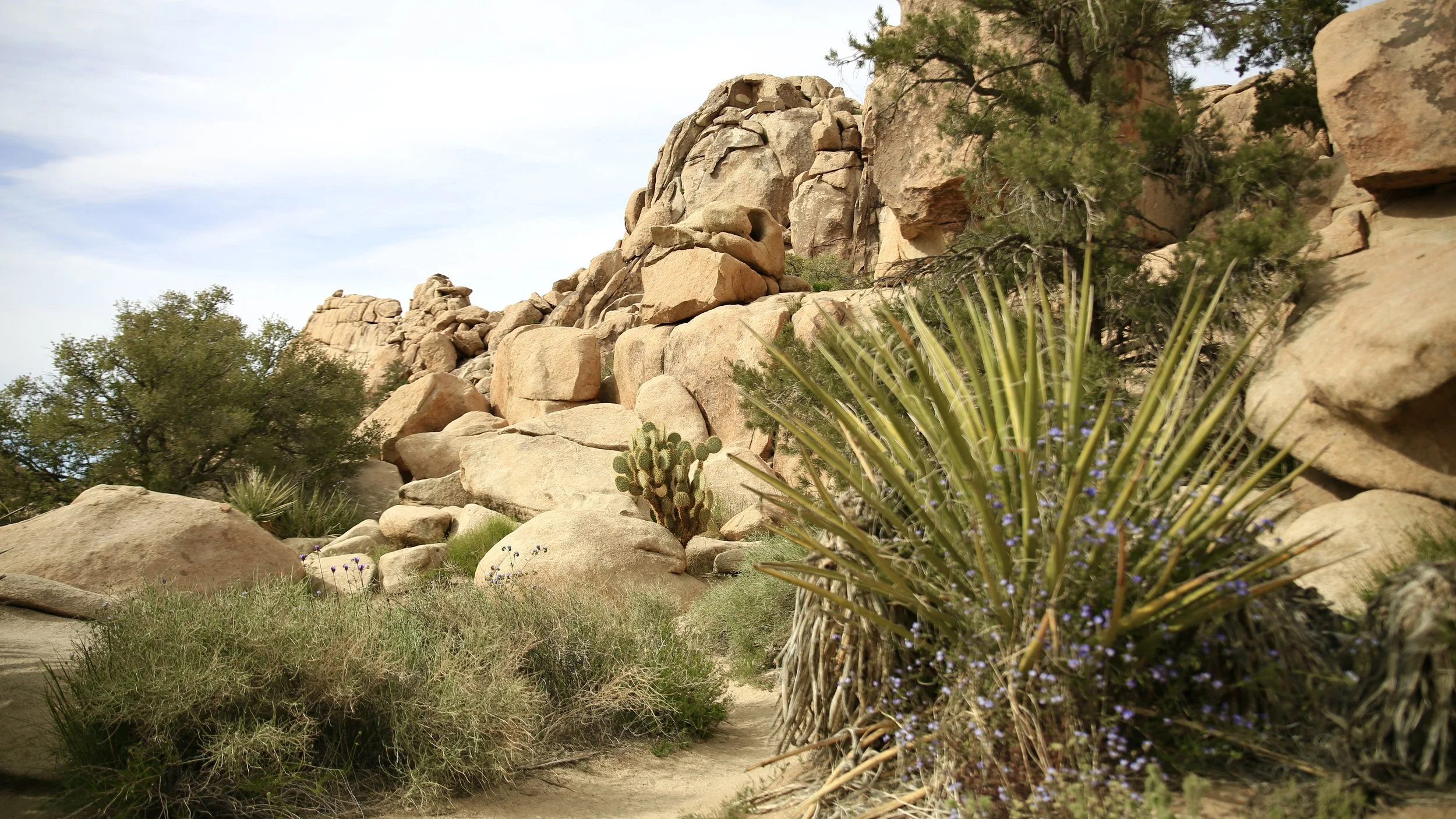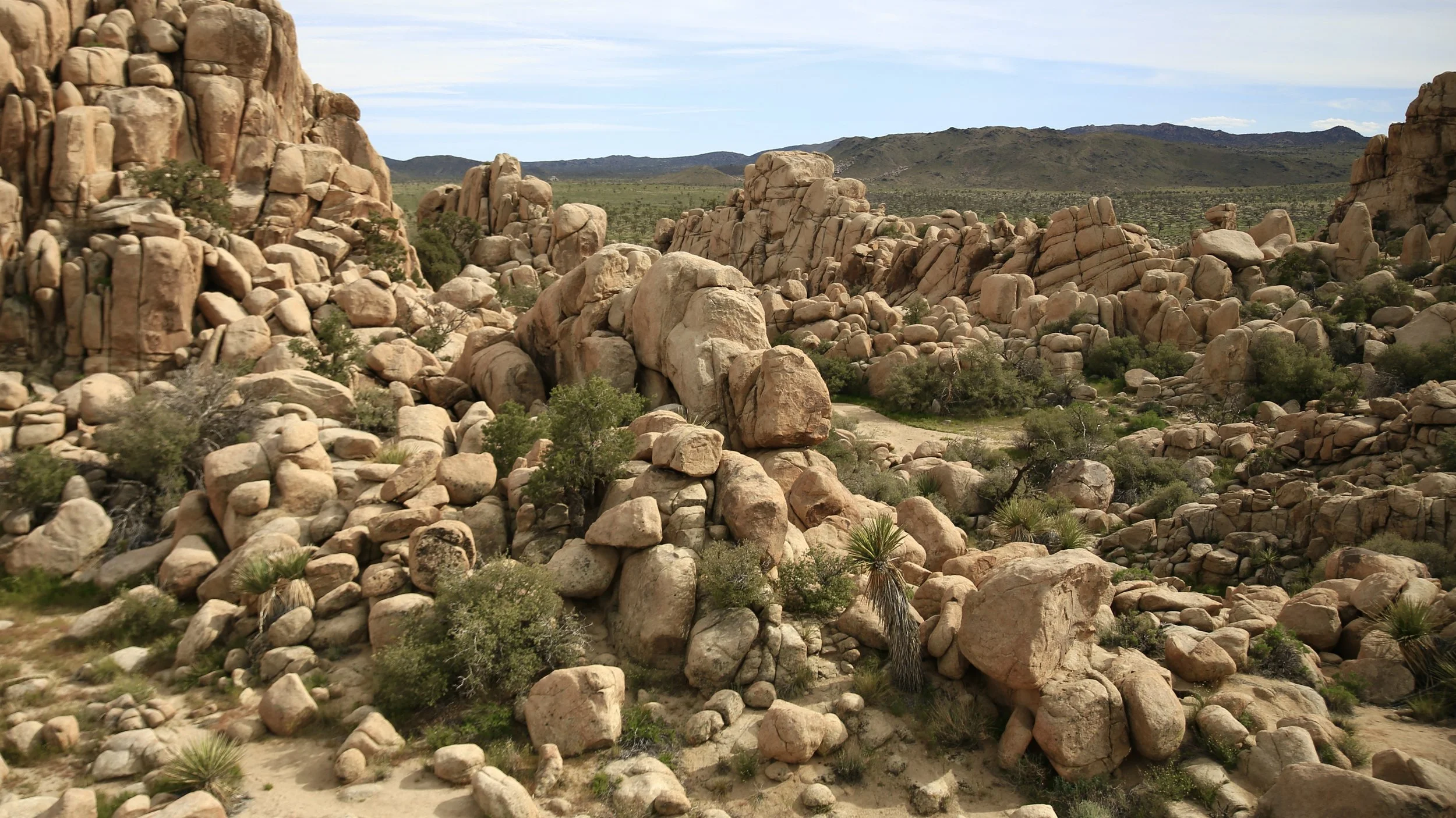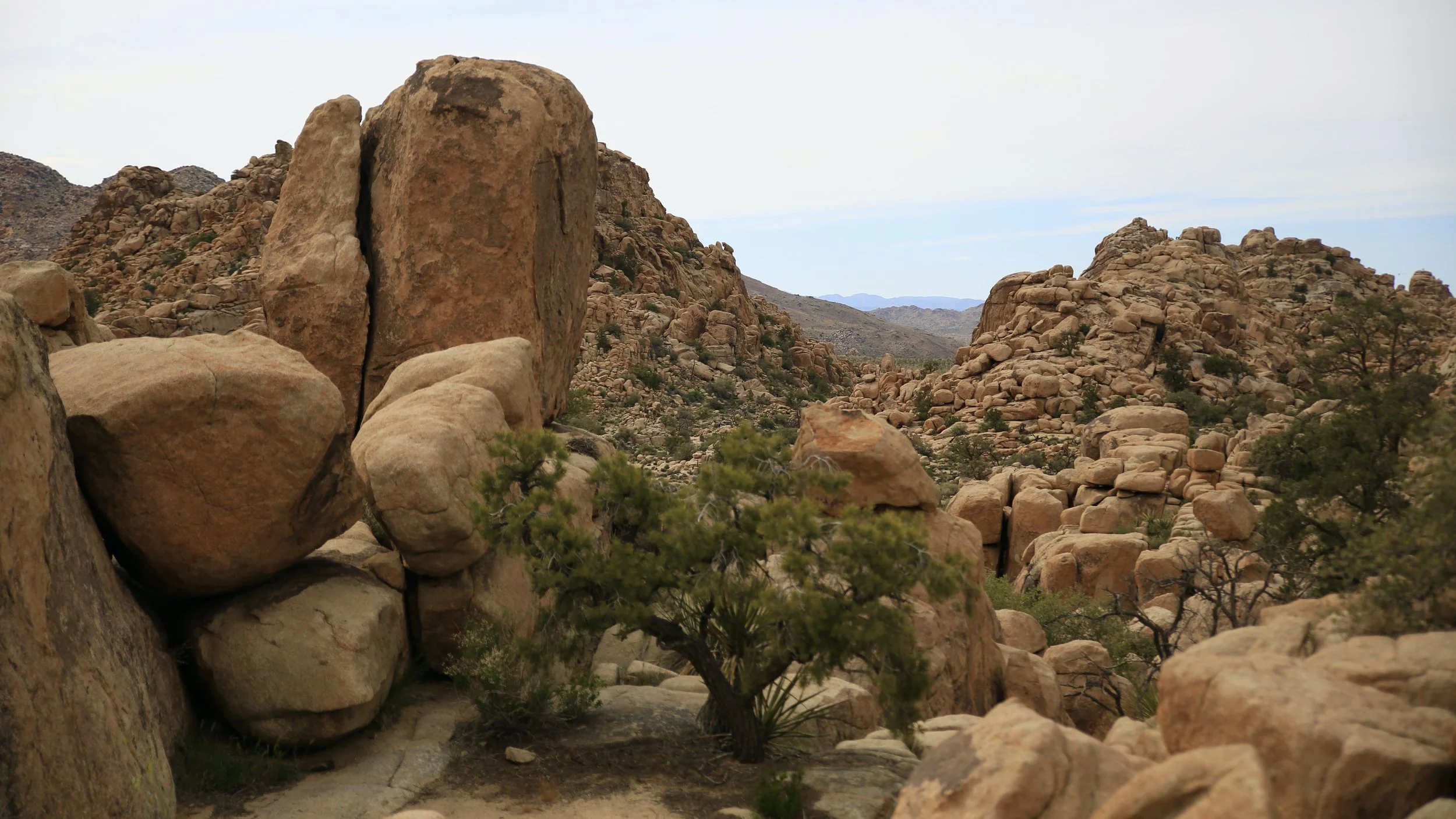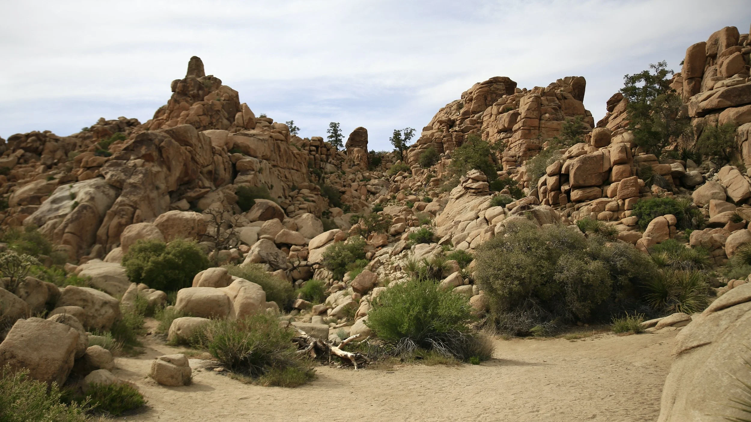 Hidden Valley is an easy 1 mile hike through a small canyon like valley filled with Joshua Trees and awesome rocks with mountains in the background. It’s a great spot to explore for half an hour or so. It’s a popular spot for rock climbers and hikers alike. The parking lot is often full so be prepared to hike a little more than the 1 mile that’s advertised. The spot used to be a great natural corral that cattle rustlers would hide their take in. That is until Bill Keys blew a hole in the rock with dynamite in 1936 for his legit ranching operation.