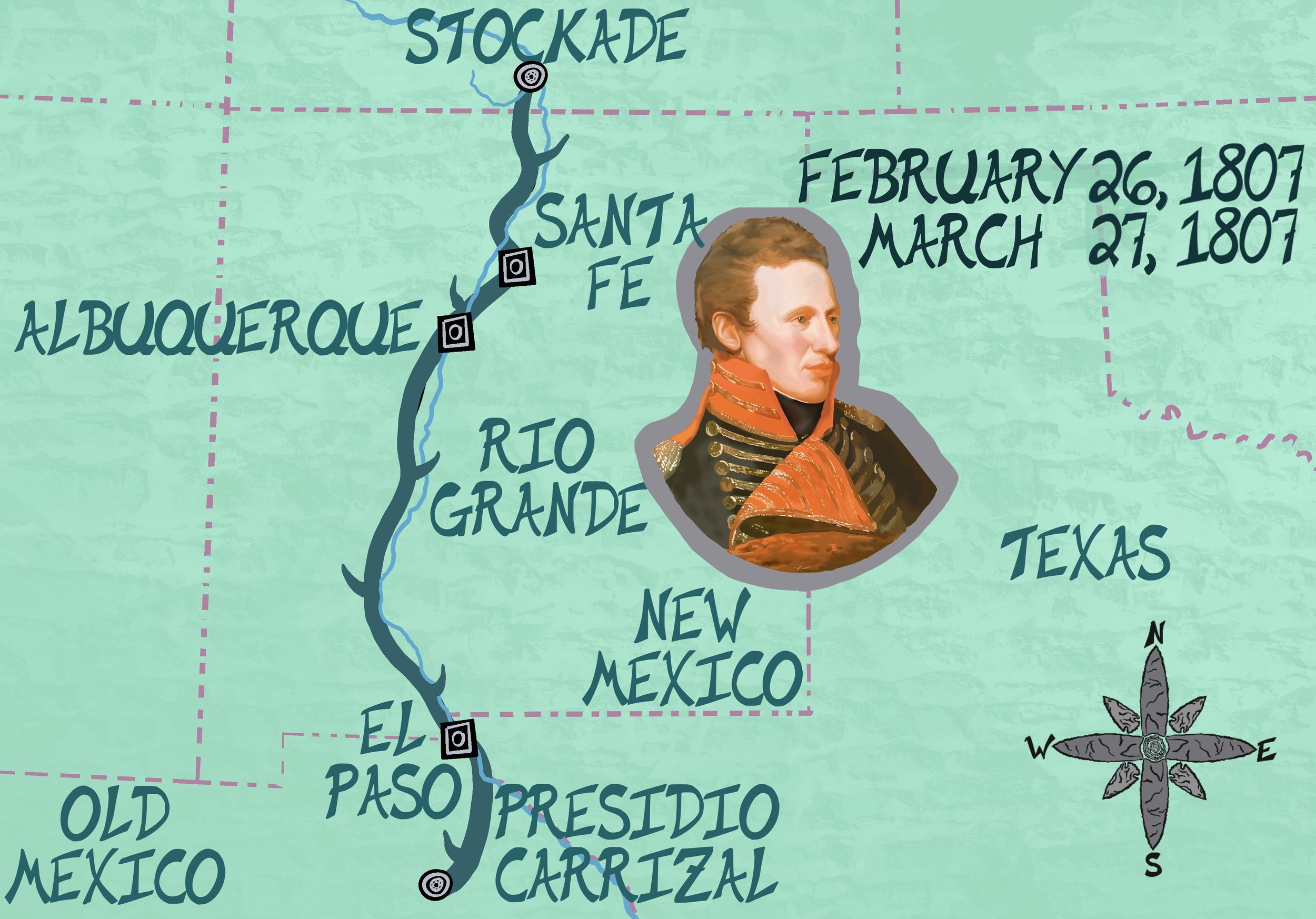 In this episode, Pike and his men get escorted from their stockade on the Conejo River down to Santa Fe where they meet the governor. Along the way they stop at many a pueblo and town which Pike describes in detail. From Santa Fe, the group rendezvous with Robinson before heading to Old Mexico. There’s intrigue, political discussions, Apaches, and more as they travel on the Royal Road.