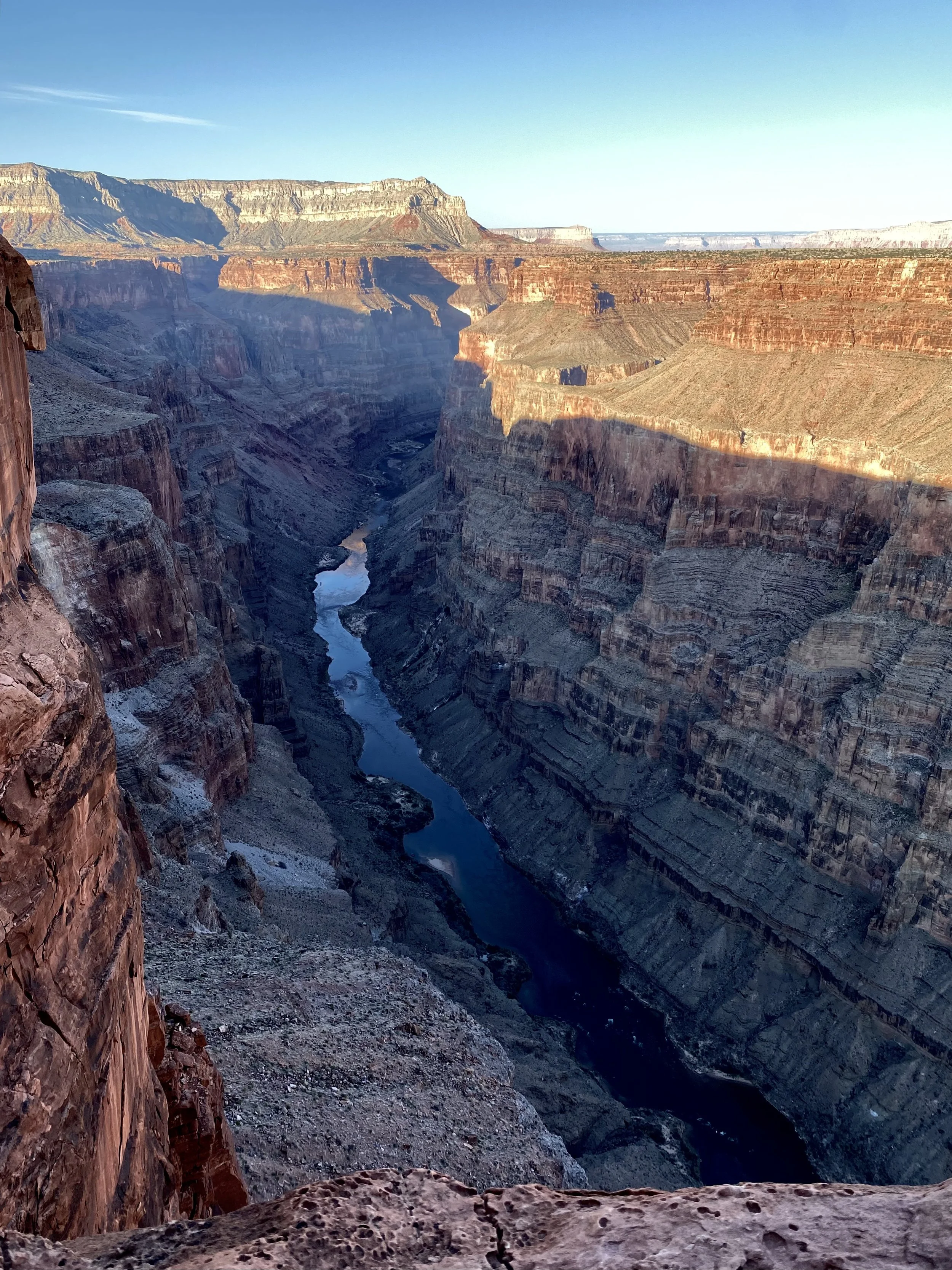 The Toroweap Lookout looms at a dizzying sheer 3,000 foot drop above the Colorado River. Looking over the edge, even flat on your stomach, is disorienting. First though, you have to reach the lookout which requires a 4WD High Clearance vehicle, some knowhow, and a lot of patience. From the Utah border in Colorado City, Arizona it’s about a 60 mile drive through some of the bumpiest and slowest country as you descend down to the very north rim of the Grand Canyon. There are plenty of signs that guide the way which are helpful if you haven’t planned out the journey but the really tough part is the end and without a 4WD High Clearance vehicle, you aren’t making it to the campground or the overlook. The Tuweep Campground, as of early 2021, had brand spankin’ new toilets and a few more sites thean I had found in my research. The sites though, are wonderful and sit just back from canyons that lead to the Grand one. They’re also a short hike to the Overlook, they have great sunrise views, and they’re truly a dark sky zone at night.